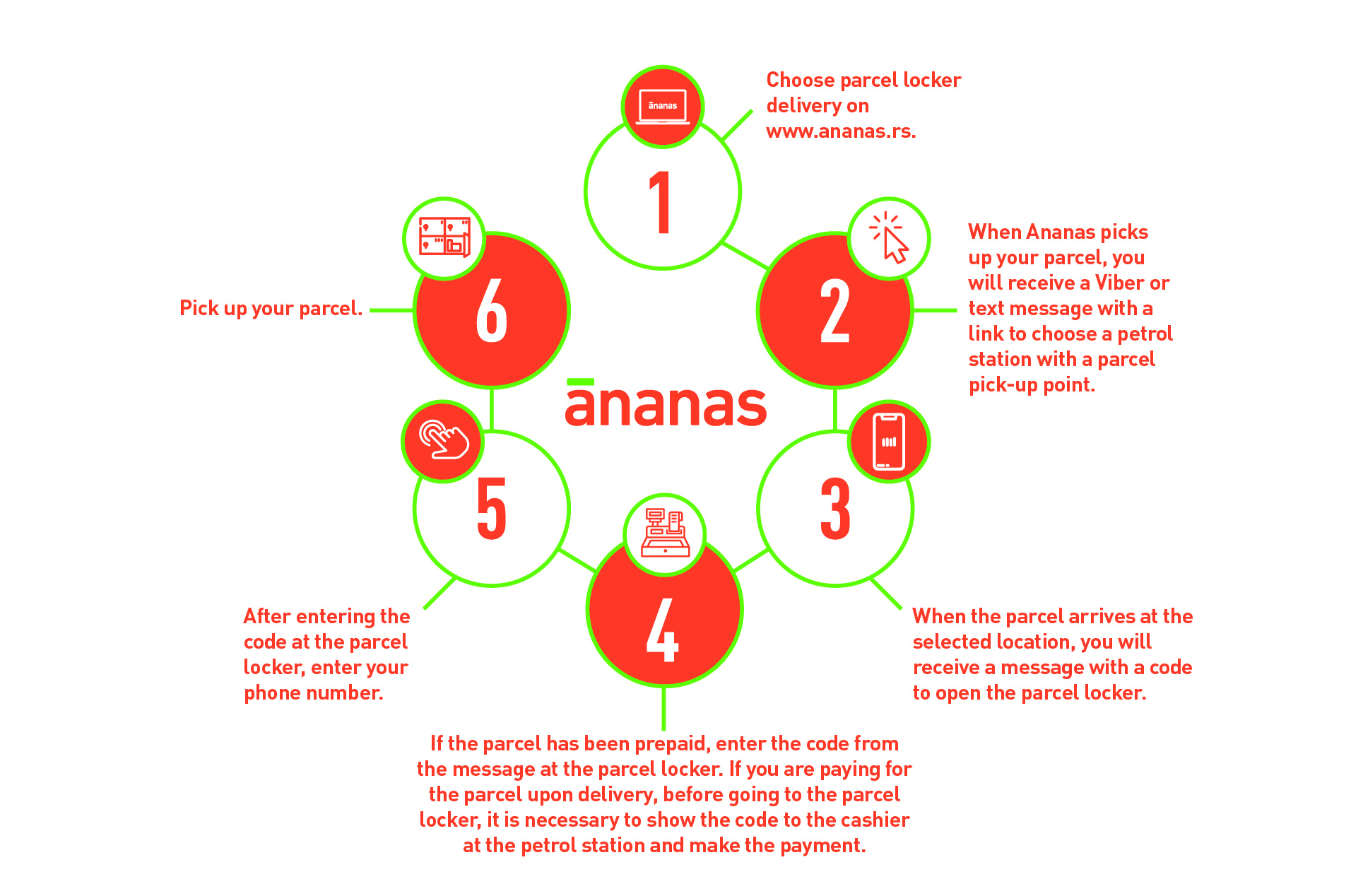 When ordering through Ananas, use the easiest delivery option – Ananas parcel lockers at NIS Petrol and Gazprom petrol stations!