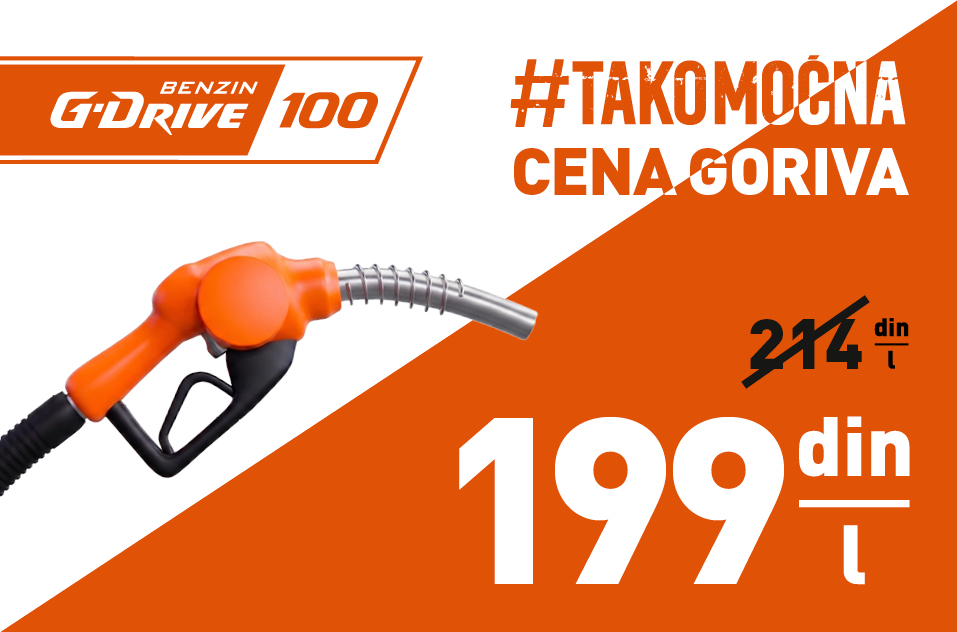 U periodu od 25. do 30. aprila, obezbedite maksimalnu snagu svom motoru po specijalnoj ceni. Premijum G-Drive 100 benzin dostupan je za samo 199 dinara po litru na sledećim benzinskim stanicama: