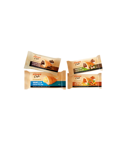 Drive Cafe кроасани су запаковани како би се очувала њихова свежина, јединствен укус, мекоћа и сочан кремасти фил. Желели смо да буду твој сапутник на свакој дестинацији и зато их можеш пронаћи на свакој НИС Петрол и Гаспром бензинској станици.
